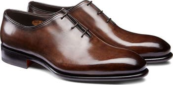 A plain toe brings a sleek look to this hand-burnished leather oxford fashioned with Goodyear welt construction for durability.