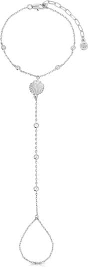 A delicate chain drapes from your finger to your wrist in this cubic zirconia and shell piece sure to evoke your inner mermaid.