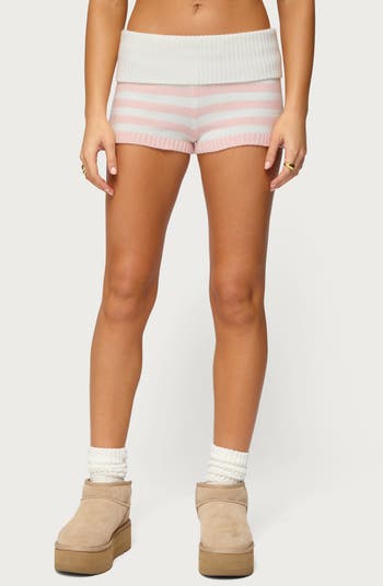 The shortest shorts keep it cute with softly shaded stripes and a low-slung foldover waist.