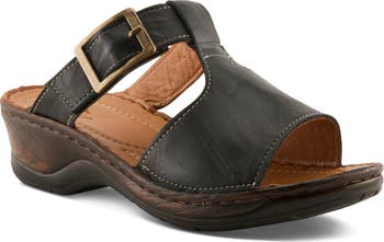 Generous cushioning and a flexible outsole add plenty of everyday comfort to this essential block-heel sandal.