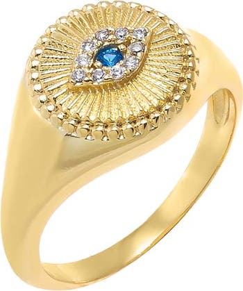 Sapphire Blue CZ Evil Eye Signet Pinky Ring