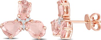 These pretty sapphire and diamond accent stud earrings are crafted in 14k rose gold (option in 14k white gold). These earrings feature 6 fancy shaped pink sapphire (option in purple) and 8 round-cut diamonds that are beautifully embellished on the center of the earrings. Enhanced with a high polished finish, these earrings are secured with butterfly closures. Elevate your style with timeless charm and modern grace.