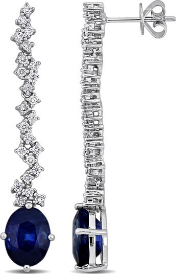 Sapphire & Diamond Drop Earrings 14K