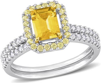 Sapphire & Diamond Halo Bridal Ring Set 14k