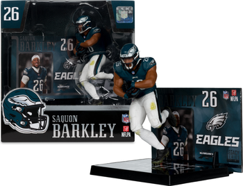 Saquon Barkley (Philadelphia Eagles) NFL 7" Figure McFarlane. Saquon Barkley is a running back for the Philadelphia Eagles, joining the team in 2024 after six seasons with the New York Giants. In his debut season with the Eagles, he led the NFL with 2,005 rushing yards and 13 touchdowns, earning his third Pro Bowl selection and being named NFL Offensive Player of the Year. Barkley played a pivotal role in the Eagles' Super Bowl LIX victory, contributing 57 rushing yards and 40 receiving yards in the championship game. His performance set a new NFL record for total scrimmage yards in a single season, including playoffs, with 2,857 yards. In March 2025, Barkley signed a two-year, $41.2 million contract extension with Philadelphia, solidifying his status as a cornerstone of the Eagles' offense. Officially Licensed by the NFL and NFLPA.