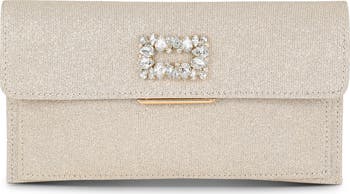 A statement piece that will make a bold statement, this envelope llutch with crystal brooch is a must-have for any woman's wardrobe. It has a spacious interior with an inside 3 card pocket and an outside underflap slip pocket, making it perfect for carrying all of your essentials.