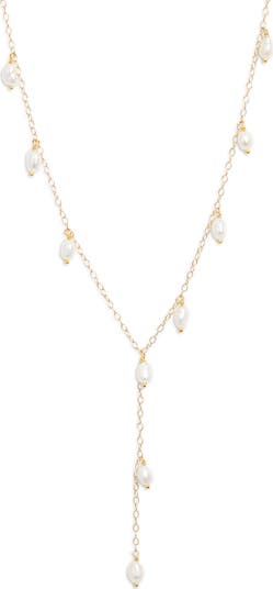 Bring delicate shine and texture to your neckline with this handcrafted Y-necklace made of 14-karat gold fill and dotted with baroque freshwater pearl charms.