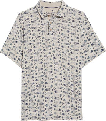 Silky lyocell and lightweight linen bring exceptional softness and comfort to a polo patterned in orderly schools of silvery-grey sardines. Made with lots of enhanced stretch, it's the perfect appetizer for a delicious day in the sun.