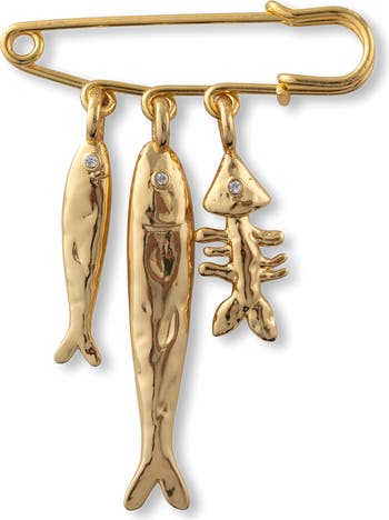 Add a playful seaside vibe to your ensembles with this sardine-inspired brooch plated in 18-karat gold.