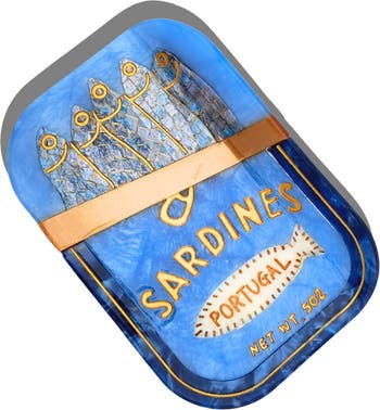 A handpainted claw clip designed to resemble a tin of sardines is sure to charm seafood lovers while keeping your locks perfectly in place.