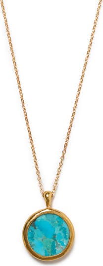 The Mediterranean coast comes to life through this pendant necklace featuring a stunning solitaire turquoise and warm 18-karat-gold plating on sterling silver.