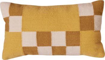 Woven pillow cover in New Zealand wool whith checkered pattern. Handcrafted in India. Cotton Canvas Back