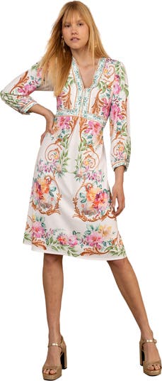 A standout floral dress designed to flatter with its softly structured silhouette, intricate patterning, and graceful V-neckline. Effortlessly elegant for daytime events, weekends away, or any moment that calls for easy sophistication