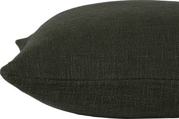 Soft and sumptuous in textured cotton, this throw pillow in deep olive green is a cozy addition to your favorite nook, couch or bedroom retreat. Feather/down fill gives the piece an ultraluxurious and comfortable feel.