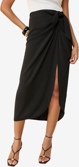 Designed with a soaring thigh-high slit, this lightweight midi skirt is a faux-wrap classic secured with a jaunty tie at the hip.