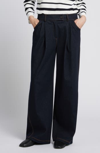 Trouser-inspired styling and a solid dark wash give these wide-leg jersey jeans a sophisticated look perfect for work or the weekend.