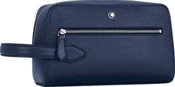 Elevate your travels when you pack your bathroom essentials in the handsome textured Saffiano leather of this wash bag designed with a roomy interior along with a handy external zippered pocket.