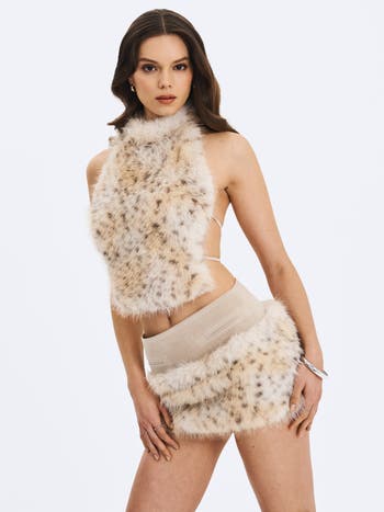 Sasha Cheetah Backless Contoured Faux Fur Halter Top