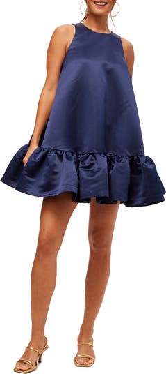 Voluminous A line cocktail dress in chic satin with a wide ruffled hem
