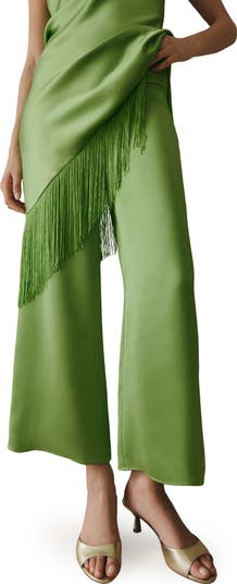 Silky-smooth satin lends a fluid, glamorously draped effect to these cropped pants cut in a wide-leg silhouette.