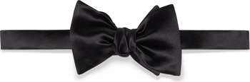 The cotton and silk satin employs the same fabric that decorates the tuxedo lapels, with a smooth texture and slightly shiny effect.
