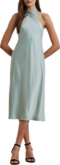 Feel your most captivating in this light-reflecting halter gown made of lightweight charmeuse that has a beautiful satin finish.