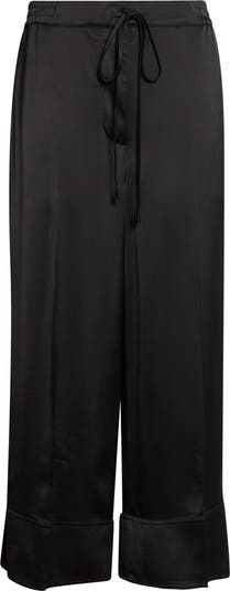 Trousers cut from fluid satin with a rich sheen are fashioned in a relaxed, pajama-inspired silhouette. Designed with a drawstring waist and wide legs, they fall into a soft drape that's anchored by bonded hems for subtle structure and weight.