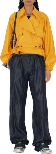 Inspired by our heritage of rainwear innovation, a trench jacket reworked in washed satin. The unlined style is cut to a relaxed fit and features a detachable hood and drawcord waist to adjust the silhouette.||Double-breasted press-stud closure|Detachable drawcord hood|Hook collar closure|Throat latch|Drawcord waist and cuffs|Unlined|Comes with a garment bag