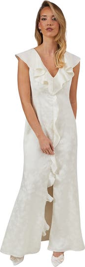 Satin Jacquard V-Neck Bridesmaid Dress
