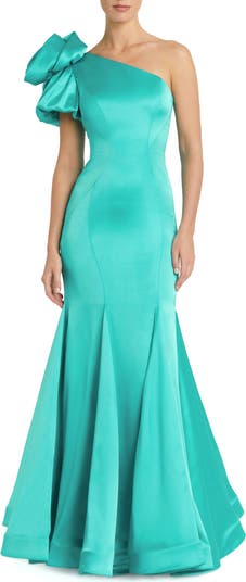 Satin Mermaid Dramatic Rosette One Shoulder Gown
