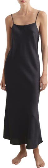 Sweeten your bedtime routine with this satin midi nightgown cut from airy fabric and suspended from superthin straps.