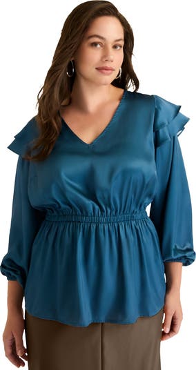 Elevate your look with this top, a feminine and chic piece that effortlessly transitions from day to night. Featuring a flattering V-neckline and a cinched waistline, the long sleeves and stylish peplum detail add an extra touch of romance.