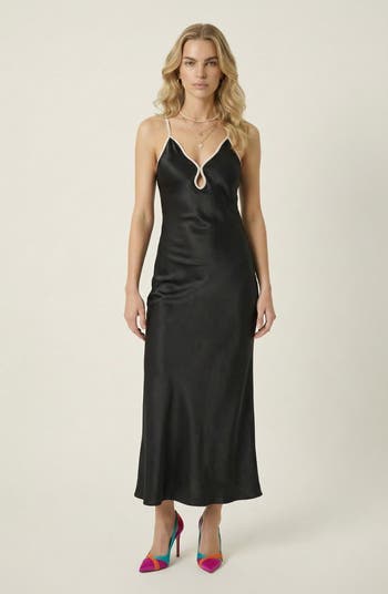Modenaire Satin Plunging Cutout Maxi Dress, Main, color, Black / Cream