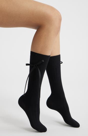 Satin ribbons add a playful twist to these stretch-cotton socks that keep you cozy and comfortable all day long.