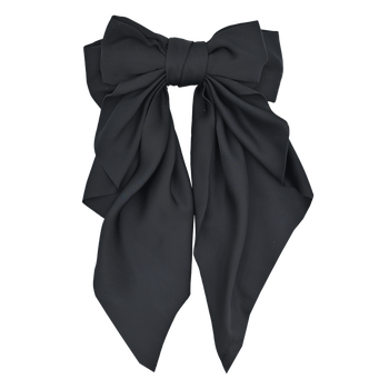 An elegant hairclip featuring a large bow, tied with smooth fabric into wide loops and long flowing tails. Designed to sit gracefully at the back of the head, it adds sophistication and charm to any hairstyle while offering secure hold and decorative flair.