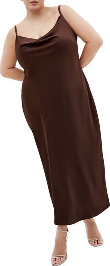 Make a timelessly elegant statement in this silky slipdress complete with a classic cowl neckline.