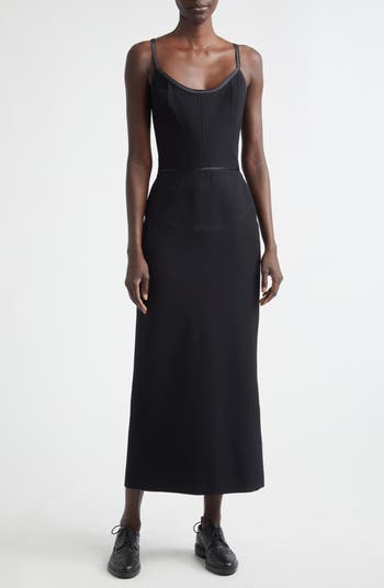 Satin Tipped Whipcord Wool Corset Maxi Dress