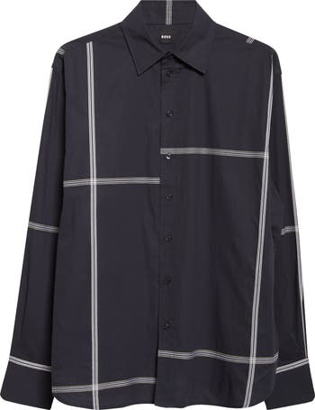 Off-kilter checks give contemporary flair to this button-up shirt made from crisp, breathable cotton.
