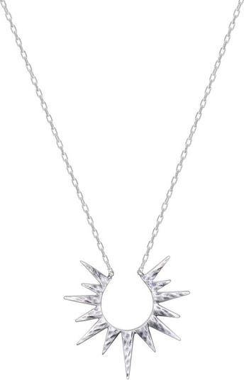 Like a compass in the sky, we turn to the stars' incandescent glow to guide us home. A brilliant sterling silver necklace shines with an open-work starburst, creating an eye-catching necklace that symbolizes dreams and inspiration.