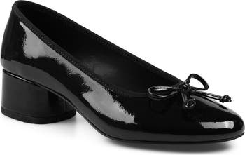 A dainty bow adds a bit of ballet influence to this round-toe pump set on a just-right block heel.