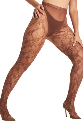 Feel seen in these stretchy solid-top tights featuring a sheer design, high-waist silhouette a romantic floral pattern.