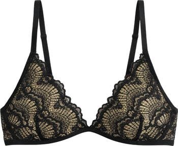 A top seller from our Sirens of The Sea Collection, this beige bikini top is finished with intricate black lace overlay for a bold yet romantic contrast. Designed with a secure, durable back clip closure, it delivers both structure and standout detail.