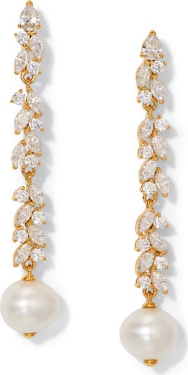 Savannah Cubic Zirconia & Pearl Linear Drop Earrings