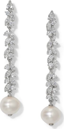 Cultured pearls bring a milky glow to these elegant earrings illuminated with clusters of sparkling cubic zirconia.