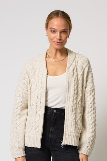 This cozy cable-knit outerwear features a relaxed silhouette with textured stitching, ribbed trims, and a front zip closure, offering warmth, comfort, and effortless layering for everyday wear across seasons and versatile styling.