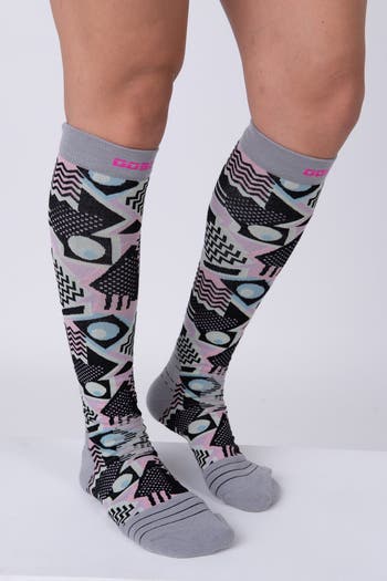 Our lovely Merino Wool Ski socks combine our flamboyant styling with technical features. We use a combination of fabrics to ensure all-day warmth and comfort, tailored for snowsports. The merino Wool in our ski/snowboarding sock is known for its temperature regulating and breathable qualities, to avoid cold damp feet on the slopes or Pow! Merino's natural odour control ensures the garment stays fresher for longer, whilst its super fine merino fibre has a silky texture to ensure comfort against the skin. A seamless toebox provides a chafe-free wear. For high-performance, a padded shin section along with ankle and bridge support provide anatomical cushioning during high impacts. The calf band enhances hold to avoid any vulnerable areas being exposed to cold temperatures and stops your socks slipping down inside your boots! Snow socks with medium cushioning for comfort and control Snowsport specific protective shin and ankle cushioning Moisture wicking construction to keep feet dry & prevent blisters High insulating and warming Merino wool-mix with odour resistant qualities Medium cushioning for enhanched comfort & control Composition 40% Merino Wool + 30% Polyamide (Recycled) + 26% Polyester (Recycled) + 4% Elastane A lightweight mid fit helps with close fitting boots. We have three sizes of these bad boys: Small/Medium UK size 4-5 Medium/Large UK size 6-8 Large/XL UK size 9-12