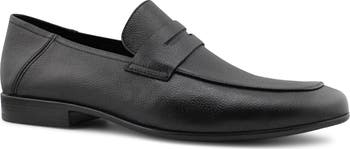 A classic penny keeper and an apron toe lend timeless sophistication to a leather loafer coated in a water-resistant finish.