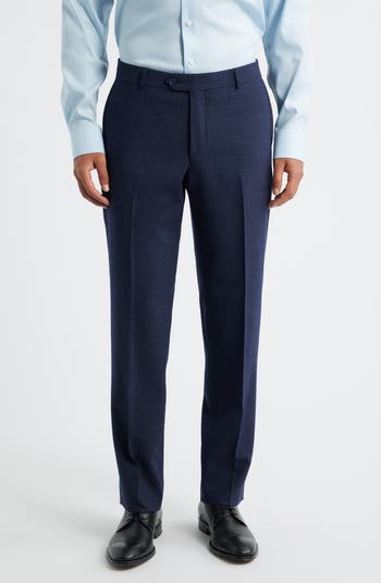 Saxony Trim Fit Flat Front Thatch Weave Wool Blend Dress Pants