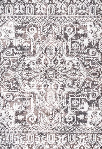 This medallion rug has an ornate pattern that's both classic and modern; add a Bohemian touch to your living room, bedroom, entry or kitchen. Varied tones of dark brown on an ivory background give this rug a hand-woven, vintage vibe. The busy allover pattern is pet-friendly and great for kids too.