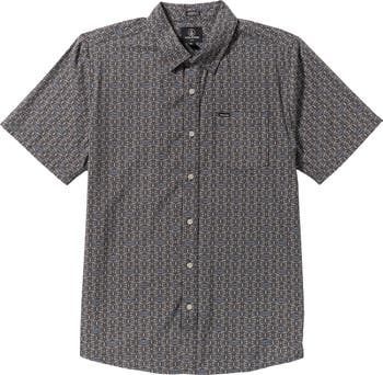 A hypnotic print lends mesmerizing depth to a shirt made of breathable cotton and silky viscose in a fit that's perfect for relaxing on warm, sunny days.